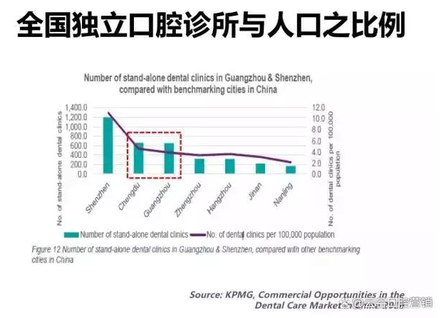 所以,这个图从侧面反映出,成都和广州对于口腔医疗资源的需求巨大。这也说明在为何成都会有西部国际口腔展,在广州会有华南展,这与这两地的市场需求是有关联的。