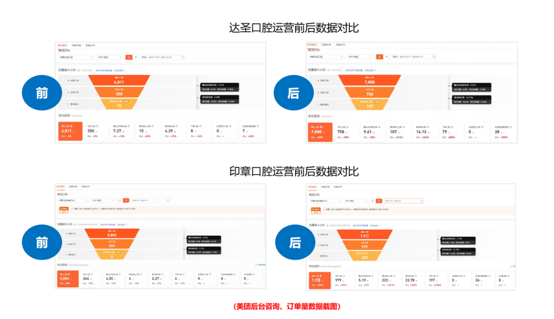云谷帮助新开业的加舟、伯乐、若贝等客户,策划诊所开业推广活动,打响知名度; 帮助入驻美团的达圣、雅尔、啄木鸟等口腔机构客户,进行美团店铺装修、团单结构设计和平台推广,曝光量、点击量和订单量都有数倍增长,超过同行平均水平;
