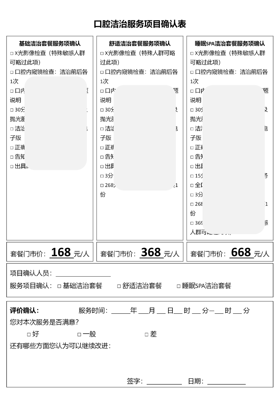 洁牙师绩效考核标准:洁牙服务确认表客户好评数据(如造假,直接取消当月全部绩效激励)