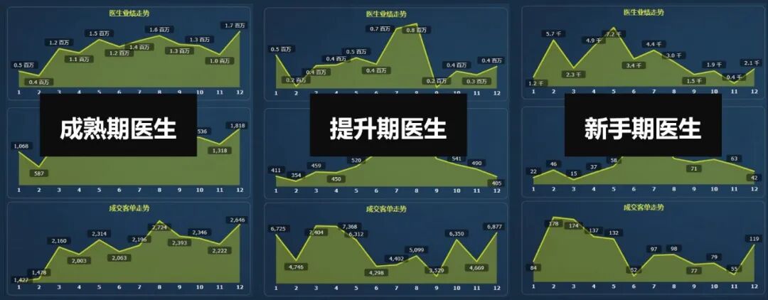 这里是成熟期、提升期、新手期对应的状态表现,机构可以对标自己的医生团队数据自测下。