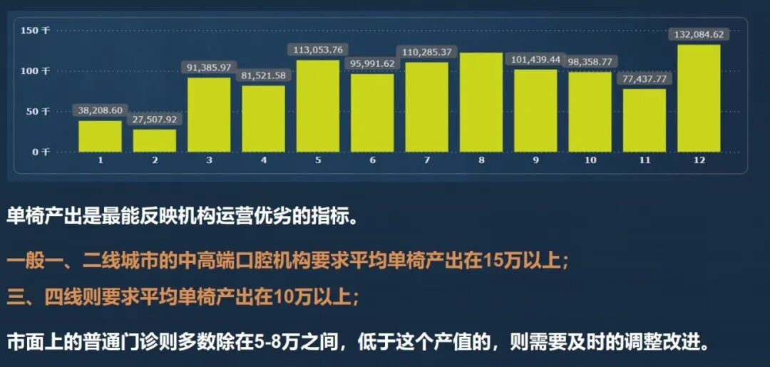 每台牙椅的月度平均产出,直接反映机构的经营水平。