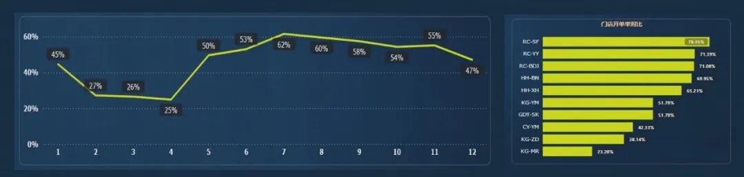 开单率是消费金额大于0的客户占总进店客户人数的比率。