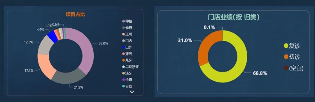 业绩占比一般看项目占比和就诊类型占比,当然有时候也会看来源占比。