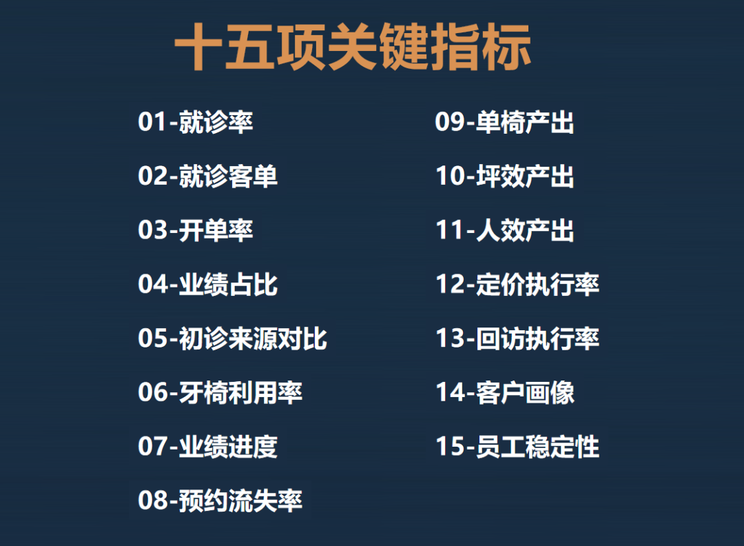 以上就是口腔机构在日常经营中,需要重点关注的十五项关键运营指标。