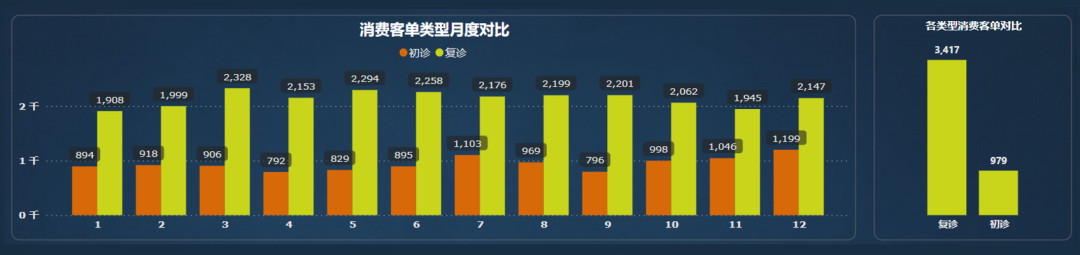 不同的就诊类型客单要求也是不同的,初诊客单过低、过高、或者波动大,都不利于机构的稳定经营。