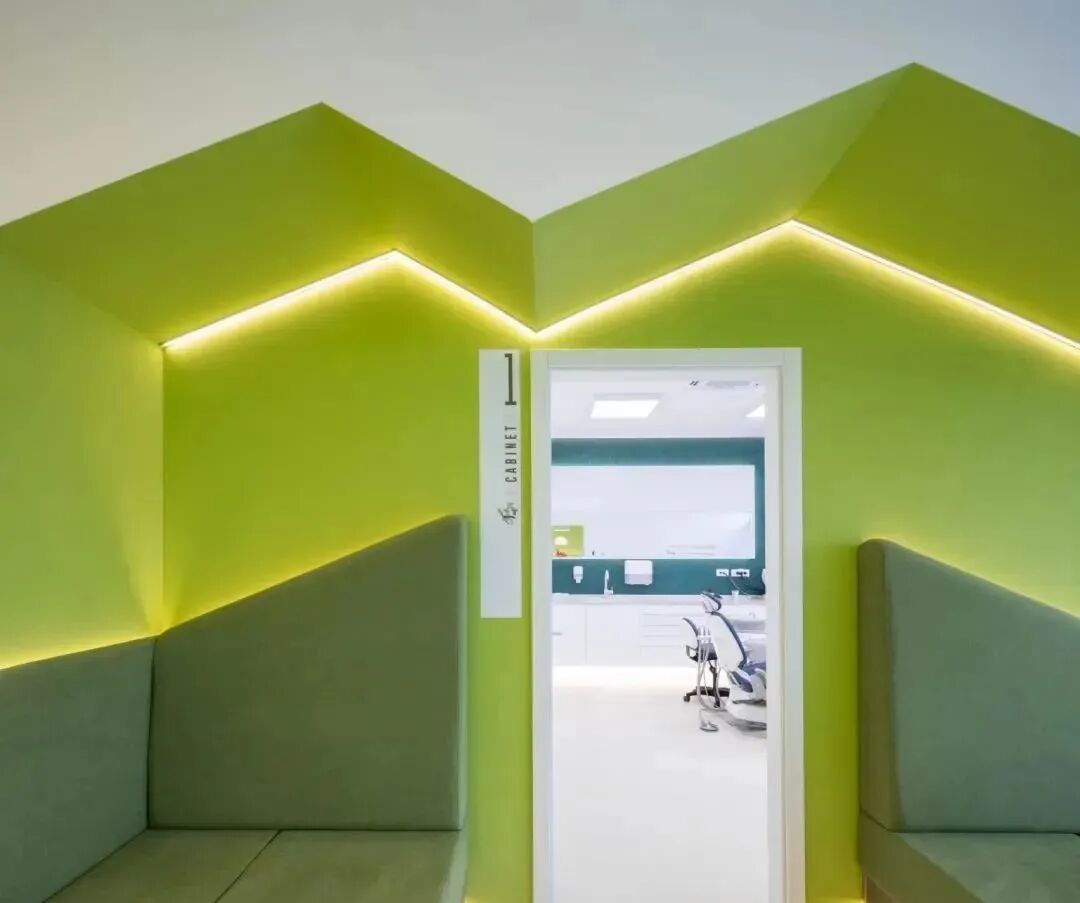 口腔诊所并非是一个让人开心的地方,当然任何诊所都不会让人开心:冰冷的挂号台,令人焦虑的等候椅,充满不安的诊室门,充斥着医患双方的互相不信任感。但从精神层面上来讲,诊所理应是个带来希望的场所,至少应该是个温暖的空间,看牙或许并不愉快,但是需要我们在口腔诊所装修设计上花点功夫,于是这里便有了一些温暖,还多了一些关怀。